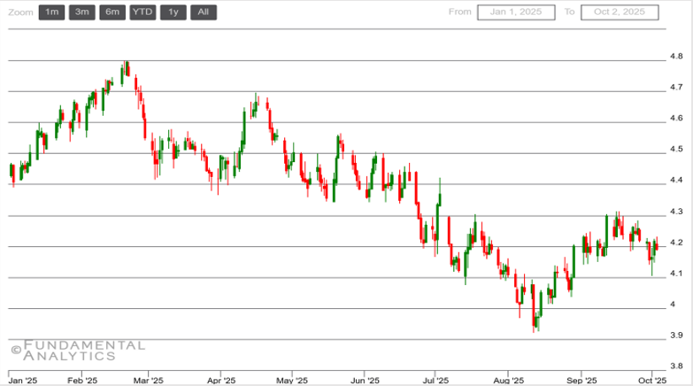 - Black-Sea competitiveness persisted. Russia adjusted its floating export duty (first higher, then slightly lower) while consultants kept 2025/26 exports ~43–44 MMT, signaling continued aggressive pricing that pressured Chicago spreads.