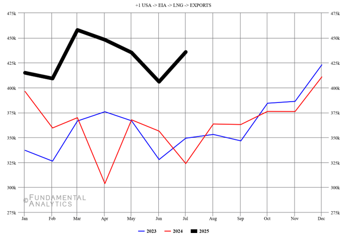 Last week, I looked at forecasts for LNG mostly from the supply side, but that is only half of the story. This week, I will fill out the rest by looking at the forecasts for LNG from the demand side. I will be using the same sources: the report from the International Energy Agency (IEA), World Energy Outlook 2023, and the report that the Independent Commodity Intelligence Services (ICIS) published this year, 2050 Global LNG Outlook. But first, we look at the graph of US LNG exports from 2023 to the present, as something of a proxy for global (ex US) demand for LNG.