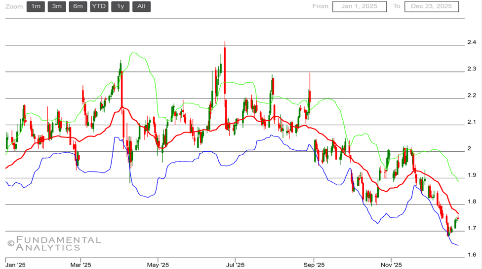WTI, RBOB, and Henry Hub Natural Gas stayed range-bound: product builds, resilient U.S. supply, softer demand, and easing risks offset crude draws and LNG strength, while thin holiday trading kept spikes short-lived.